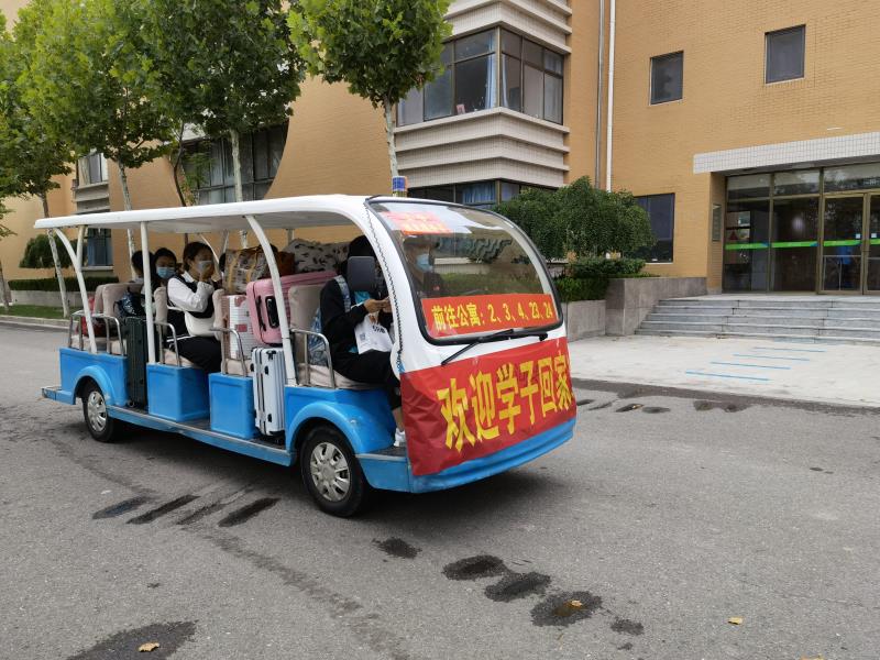 为进一步为返校学生提供更优质、更便捷、更舒心的服务,打通服务学生的最后一公里,学校安全保卫科与学生工作处联合设立便捷服务车,帮助返校学生运送行李,解决了学生行李多、距离远的问题。各二级学院老师、志愿者和保安师傅也盯靠现场,热心服务。