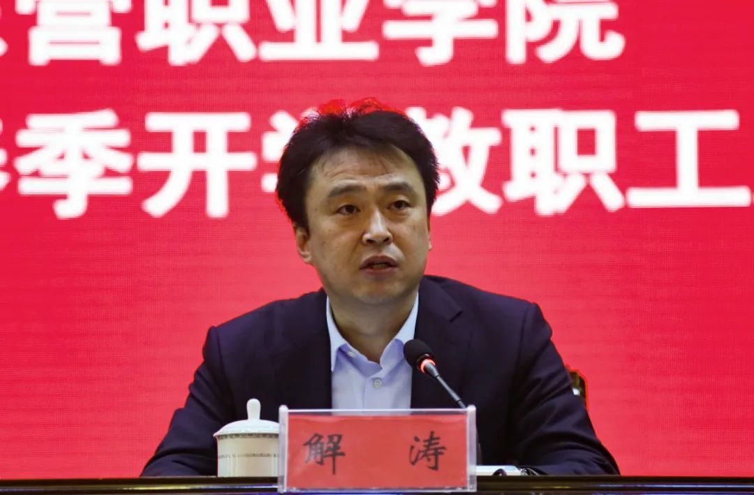 解涛在主持讲话中部署了学校新学期开学后的重点工作。解涛强调,要以“双高计划”建设为抓手,推动学校高质量发展;以学生为中心,提高服务学生全面发展的能力;以“四链”融合为路径,推进高水平高素质教师队伍建设;以守好底线为前提,抓好校园安全稳定工作。他要求,在学校建设上,要扎实工作,高质量完成既定目标,为“双高计划”“职教创新发展高地”终期验收和“提质培优行动计划”终期认定做好准备,在“双高计划”建设的基础上全面启动职业教育本科建设工作。在服务学生上,要在学生发展上“提质”,在就业工作上“巩固”,在心理健康教育工作上“强化”。在师资队伍建设上,要深入推进教育链、人才链与产业链、创新链有效衔接,深化校地合作、产教融合,推动“双师型”教师培育工作,按照“示范引领、建优扶强、协同创新、促进改革”的要求,加强教师教学创新团队建设。