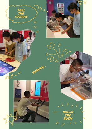 同学们依次参观了儿童科技乐园、探索发现、生命健康和生态家园等多个主题展区。展厅的布置着重了参与性、活动性和体验性,学生们在体验了"五颜六色的影子、倾斜的小屋、怒发冲冠、小鸡的孵化"等趣味盎然的活动后,让大家在互动体验式中对光学、前庭维持平衡的原理、静电作用、生命的起源等有了更加深刻的体验和理解。在展厅内,同学们还认识到常见的蔬菜和水果有哪些习性,学习到了昆虫的生存奥秘。
