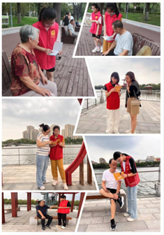 活动中,同学们面带微笑,主动向过往的老年人及其家人发放宣传单,并耐心解答他们关于脑健康的问题,引导老年人梳理正确的健康观念。