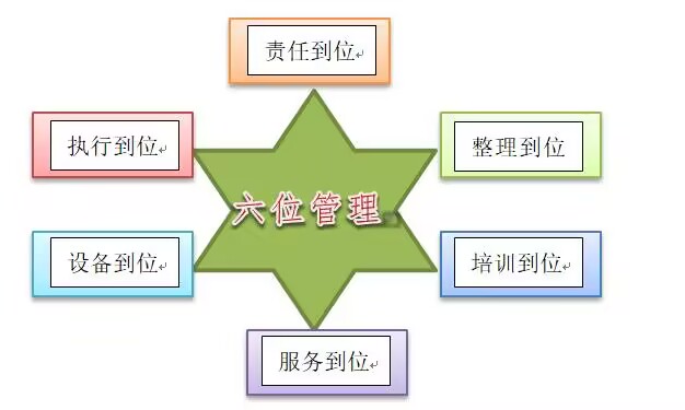 “六位管理法”包括:培训到位、执行到位、整理到位、责任到位、设备到位、服务到位。以下为具体措施: